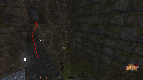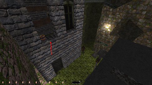 here I wish to shoot a rope arrow into the top edge of the window overhanging