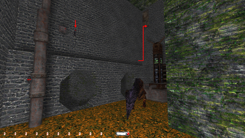 arrow. Up here the light is stronger, so I may want to dodge the crayman’s patrols a little. Inching along the east wall I